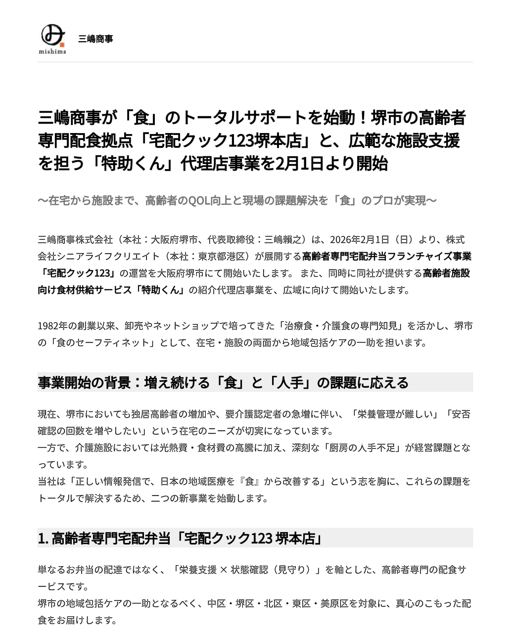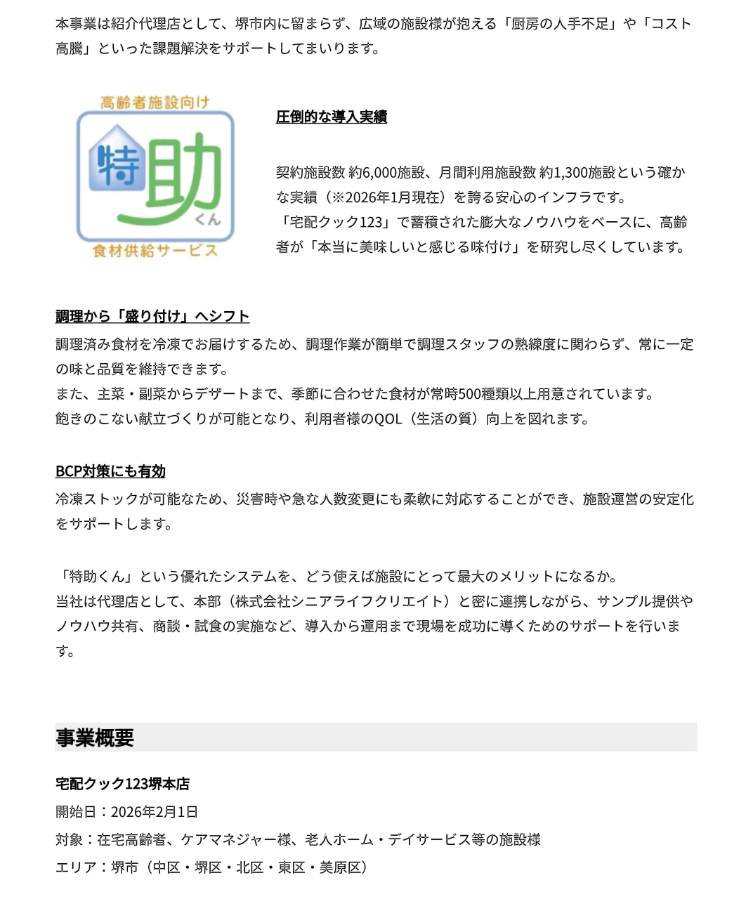【宅配クック123について】 堺市の食と健康を支える「宅配クック123」2026年2月スタート!