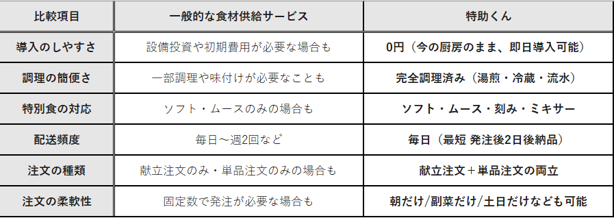 世の中には多くの食材供給サービスがありますが、なぜ私たちが「特助くん」を選んだのか。