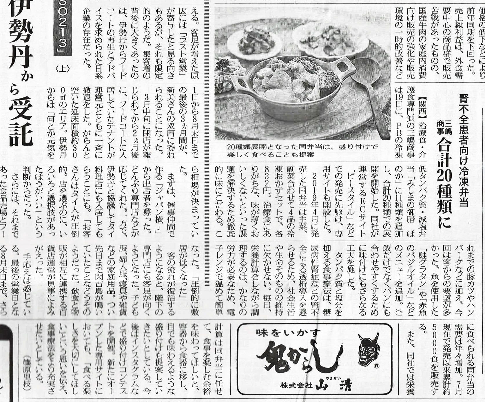 8月19日に新たにメニューを追加し、計20種類となった『みしまの御膳 ほのか』が日本食糧新聞で紹介されました。